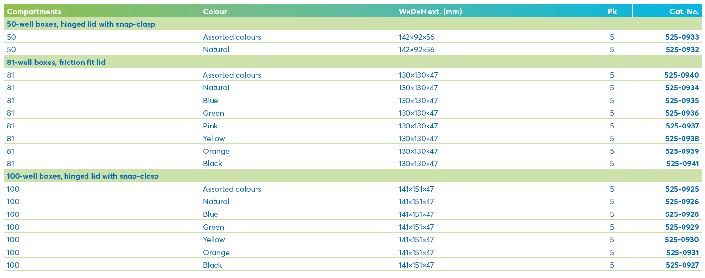 Compact footprint for microtube and cryogenic vial storage. Store 1,5/2,0 ml microtubes or cryogenic vials. Complete with an easy open, friction-fit lid. Will fit into most standard freezer racking.