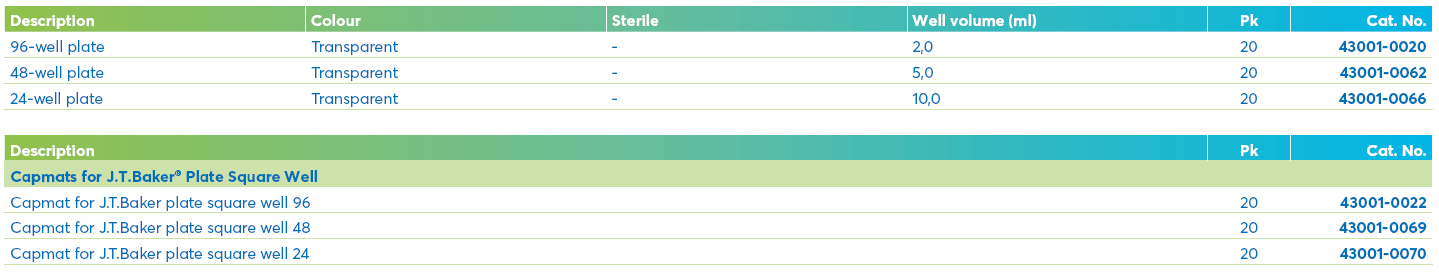 These deep square well plates, made from virgin PP, are designed to make the interchanging of plates simpler in automated systems. They are also ideal for housing both cell and bacterial culture.
