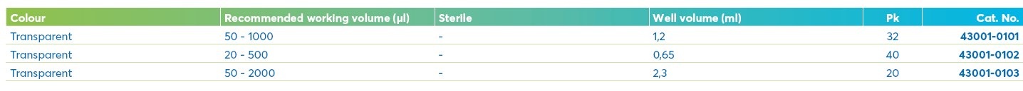 PP, 96-well storage plate with conical wells.
