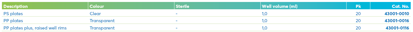 J.T.Baker Plate Round Well Plus with air escapes and raised rims for unfreezing samples.