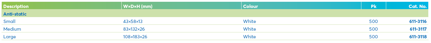 The anti-static versions help reduce the risk of static build up on samples, and helps maximise sample transfer when weighing out products.