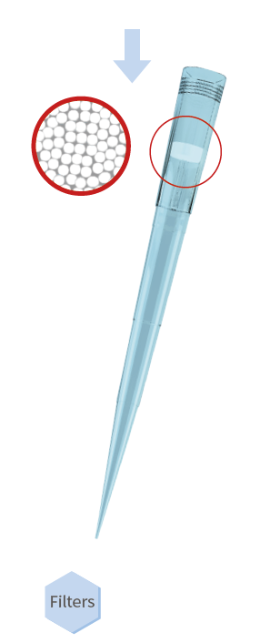 • Filter serves as a barrier against aerosols and protects the pipette shafts from any contamination