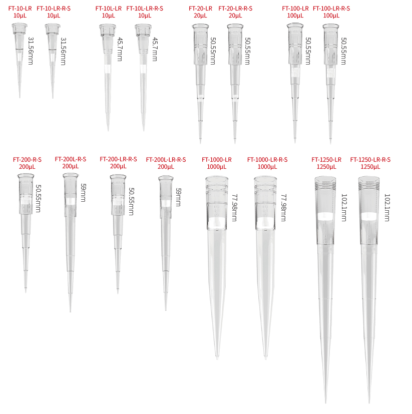 10μL Long filter tips, sterile | FT-10L-R-S | 96pcs/rack, 10racks/unit, 5units/case | 168,000 |