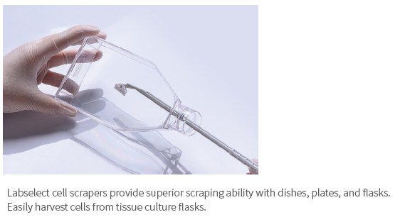 Labselect Cell Scrapers features a wide beveled edge for use in cell culture dishes or flasks, specifically designed to make collecting of cells easier and more effective. Cell scrapers feature an angled swivel blade for easy access to growth surfaces of flasks and dishes.