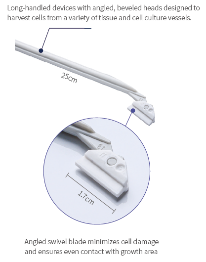 manufactured with high-quality polyethylene, blade design minimizes cell damage and ensures even contact with the growth surface. Individual packing eliminates possible chances of contamination during cell culture.
