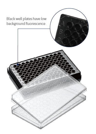 96-well cell culture plate, black bottom, black plate, clear lid, TC-treated | 11516 | 1pc/bag, 100bags/case | 147,000 |