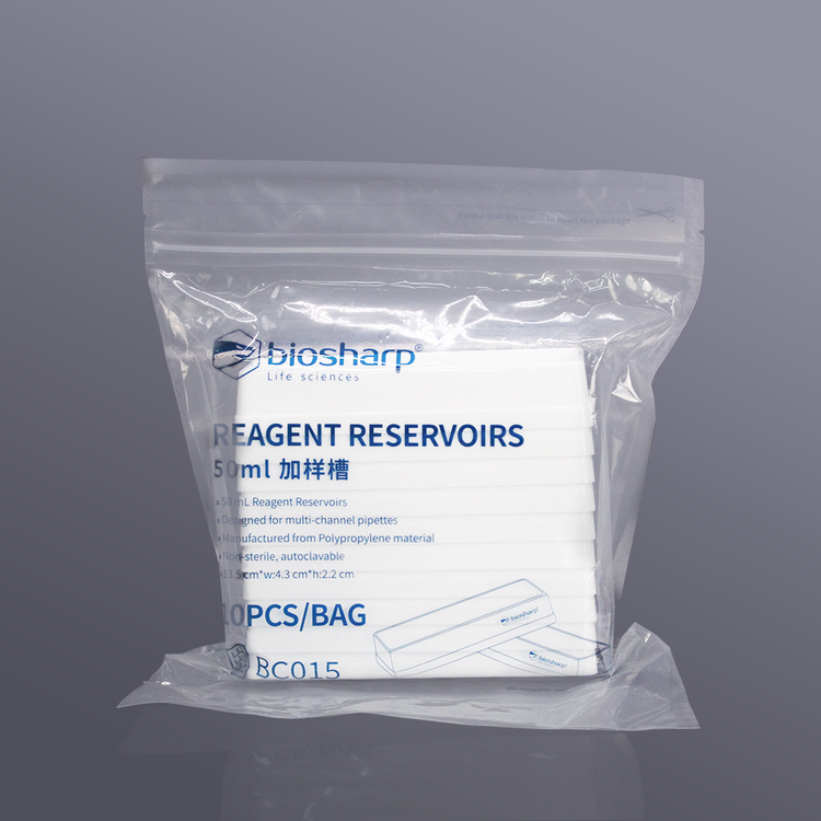 Biosharp Reagent Reservoirs are ideal for the repetitive filling of multichannel pipettes, are designed to assist in repetitive liquid transfer and will accommodate all types of pipettes up to 12-channel width. The reservoirs were developed for ease of use. Angled design promotes funneling of liquid to maximize retrieval.