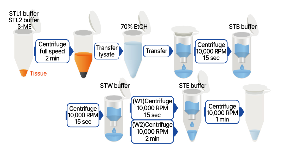 특수 제작 Polymer를 사용하여 소량의 동물 조직에서 RNA를 추출하는데 최적화된 제품입니다. 용균 시간이 짧아 단시간에 고농도, 고순도의 RNA 추출이 가능합니다.