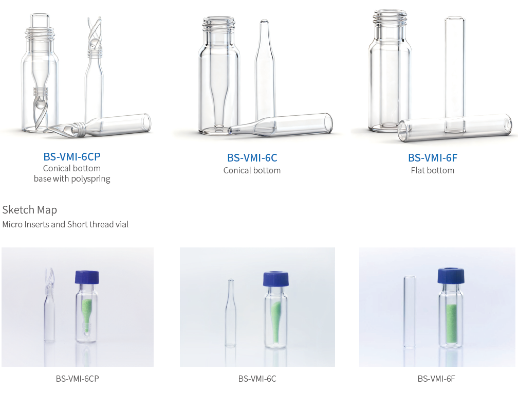 Biosharp Micro Inserts are mainly used with short thread vials. Micro Inserts decrease the surface area inside chromatography vials, enabling maximum sample recovery. Inserts are ideal for limited and micro volume applications. Variously micro inserts designed for use with chromatography autosampler vials, designed to hold a specific sample volume.