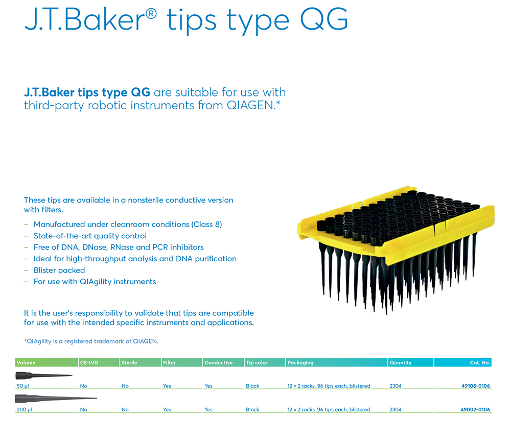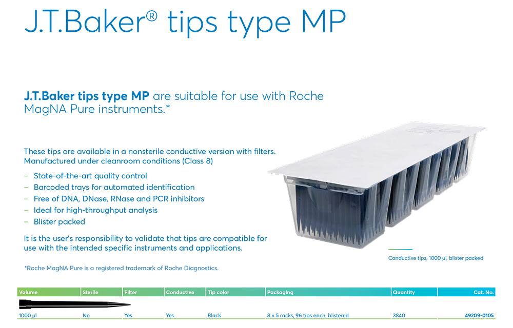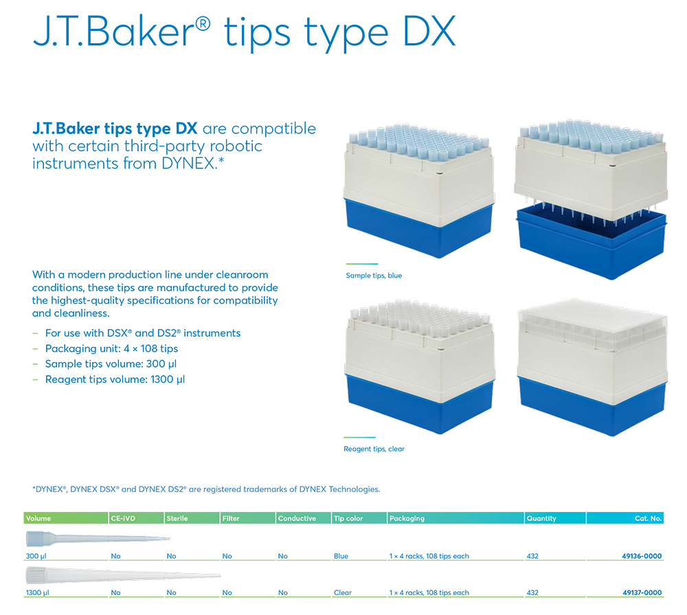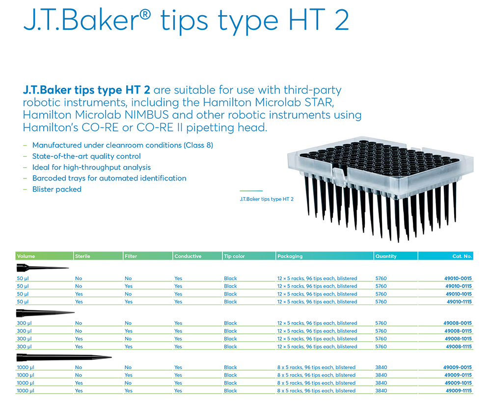 J.T.Baker tips type HT / J.T.Baker tips type HT 2 / J.T.Baker tips type TE / J.T.Baker tips type TE MCA / J.T.Baker tips type MP / J.T.Baker tips type ST / J.T.Baker tips type DX / J.T.Baker tips type OLA / J.T.Baker tips type QG