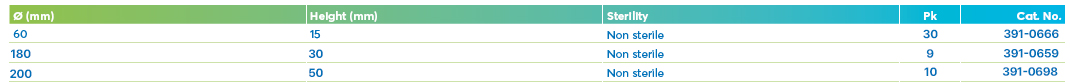 Caution: The indication of the diameter of the petri dishes is approximate.